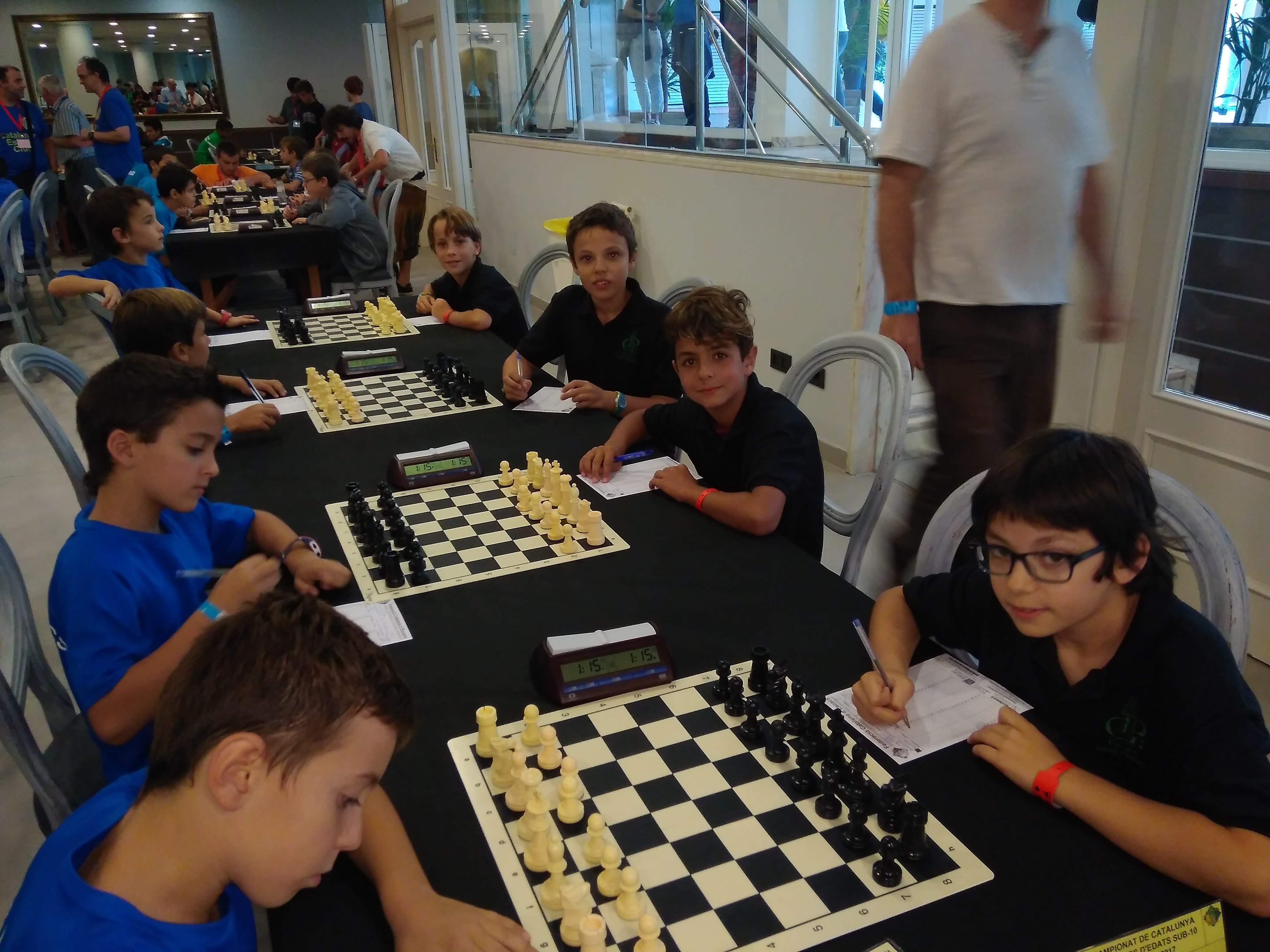 Del 12 al 14 d’octubre es va celebrar a l’Hotel Palace Pineda de Vila-seca el Campionat de Catalunya per equips d’edats d’escacs, on la secció de La Gran Penya va presentar dos equips, un sub14 format per Adria Ruiz, Abel de Santiago, Biel Lacasa i Joel Garcia i un sub10, format per Cesc Carnicer, Victor Garcia, Oriol Lacasa i Biel Alsina i com a capitans Ivan Marina i el MI Josep Lacasa. L’equip dels menuts va millorar el seu rànquing inicial i els grans van fer un paper digne finalitzant en 10º posició, que podria haver estat millor si no fos per la mala sort. Destacar el paper d’Adria Ruiz i d’Abel de Santiago en el sub14 on van ser dels millors jugadors del torneig. L’Adria va ser el cinquè millor primer tauler amb una pujada de 25 punts d’ELO i l’Abel va ser el segon millor segon tauler amb una pujada de 24 punts d’ELO. El més important és que els nens van gaudir, van fer nous amics i van aprendre a no jugar ràpid gràcies a un “contracte” que van firmar!! La propera cita important a finals de gener, on els nostres petits disputaran el territorial per poder classificar-se per a la final de Catalunya Individual i per la qual ja estem treballant fort per aconseguir bons resultats.