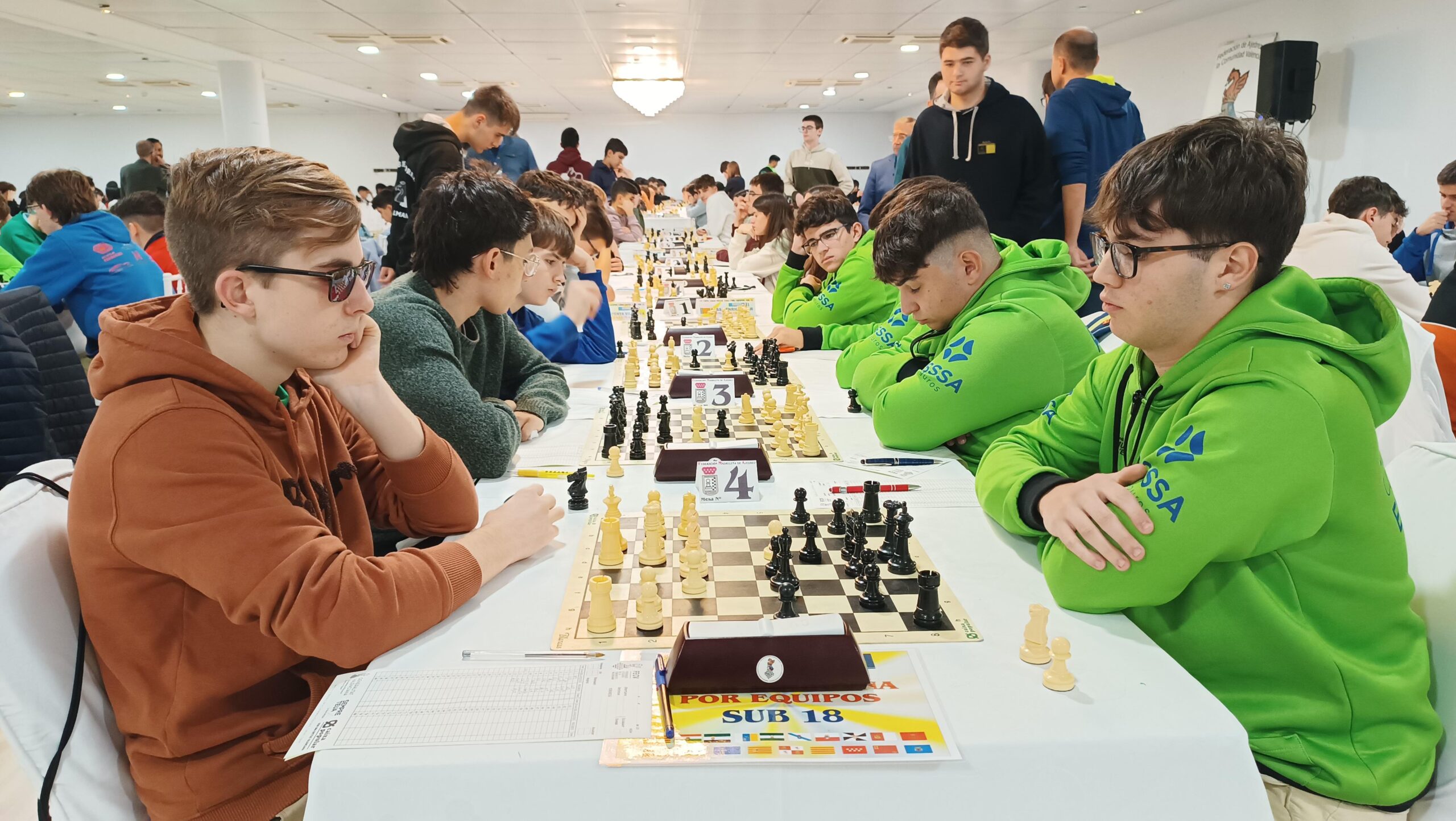 L’equip Sub18 el van formar com ja és habitual, Oriol Lacasa, Marti Marin, Cesc Carnicer i Leo Gardner. Cal dir que l’organització no va estar fina al haver de passar de 60m a 90m per inscriures un jugador de +2400 fide, el que va trastocar tota la logística a molts equips, un tema que haurien de revisar. Van fer un bon paper finalitzant en 22º posició de 55 equips i millorant en 4 posicions el seu rànquing inicial. A excepció del Cesc que va mantenir-se, la resta van aconseguir pujar ELO, destacant al Leo amb una pujada de 28 punts i quedant imbatut amb 4,5 punts.